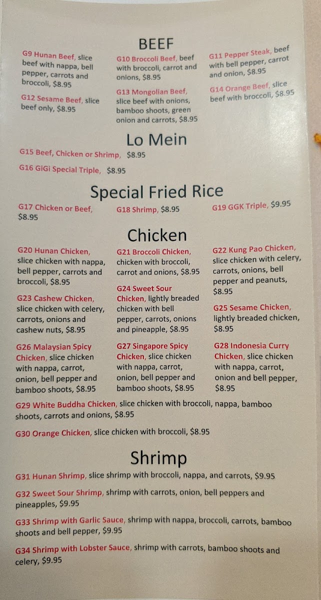 Welcome to Gigi's Chinese Cuisine, a delightful gem nestled in Tulsa, Oklahoma. Renowned for its extensive menu, Gigi's offers an array of authentic Chinese dishes, providing a feast for both the eyes and the palate. From the robust Special Fried Rice and savory Sesame Chicken to the enticing Omakase Combos, there’s something for everyone.